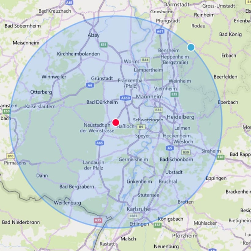 Hier sehen Sie eine Karte, in welchem Umkreis unsere Partnerfirma Abelhans Steinteppiche tätig ist.